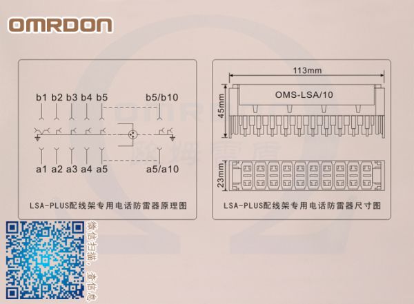 歐姆雷盾(OMRDON)OMS-LSA/10配線架專用電話防雷器主要用于通信系統程控電話交換機內外線、集團電話等設備提供線/線間及線/地間的浪涌過電壓保護,直接插入KRONE( 科龍)LSA-PLUS配線架上,每組10線保護;特別適用于模擬電話交換和ISDN網絡系統。應用于用于雷擊區域LPZ0- LPZ1分區界面。