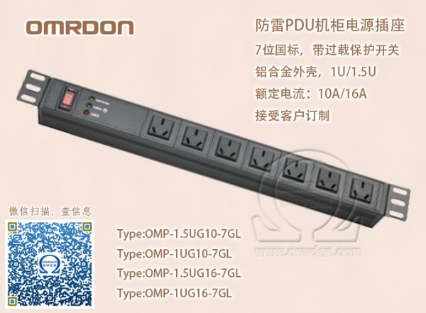 型號:OMP-1.5UG10-7GL | 防雷PDU機柜國標電源插座 |