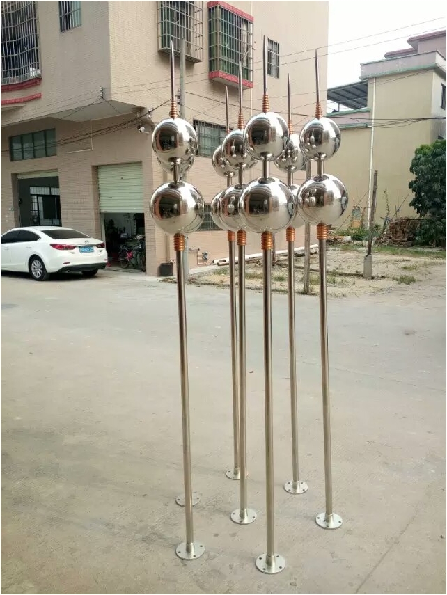 安裝注意事項:磚木結構的房屋,可把避雷針敷設在山墻頂部或屋脊上,用抱箍或對鎖坶絲固定于梁上,固定部分的長度為針高的 1/3。也可以將避雷針嵌于磚墻或水泥中,為了結構的堅固,插在磚墻中的部分為針高的1/3,插在水泥中部分約為針高的 1/4-1/5。對于平頂屋上的避雷針應安上底座與屋頂層連接,并用螺絲緊固好。