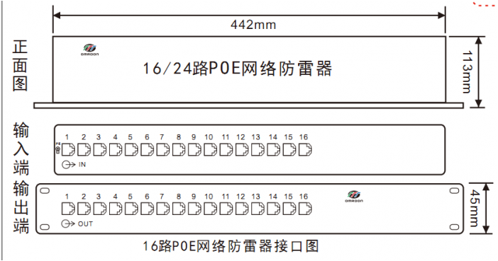 | 產(chǎn)品名稱 | 16路百兆POE網(wǎng)絡(luò)防雷器 | |||