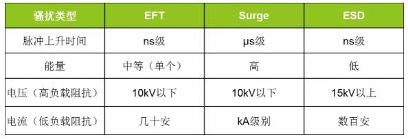 先了解幾種典型的瞬態騷擾:從表中可知,浪涌的能量最高,過電流最大,因此危害性也是最大。