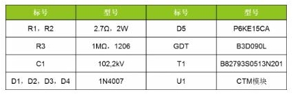 其中GDT置于最前端,提供一級防護,當雷擊、浪涌產生時,GDT瞬間達到低阻狀態,為瞬時大電流提供泄放通道,將CAN_H、CAN_L間電壓鉗制在二十幾伏范圍內。實際取值可根據防護等級及器件成本綜合考慮進行調整,R3與R4建議選用PTC,D1~D6建議選用快恢復二極管。參數表如下